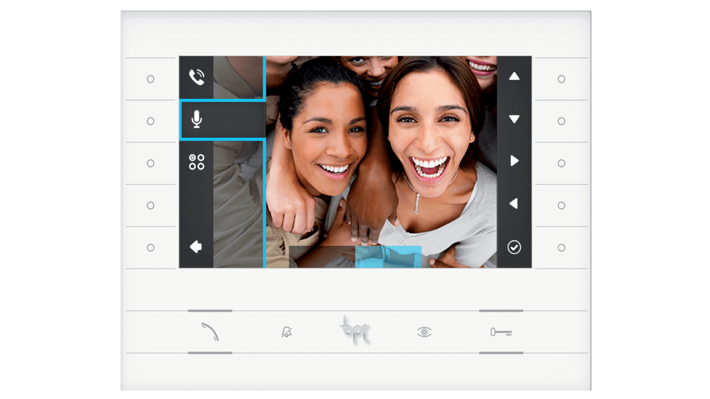 Przycisk do regulacji/wyłączania dzwonka z sygnalizacją LED wyłączonego dzwonka. Regulacja nasycenia i jasności wyświetlacza. Automatyczne włączenie wideo na panelu wejściowym z wybieraniem cyklicznym. Funkcja Master/Slave i przechodzenie między obrazem z różnych paneli w przypadku jednoczesnego połączenia. Funkcja blokady przycisków w celu ułatwienia czyszczenia. Funkcja „Picture Capture” do zapamiętywania obrazów.