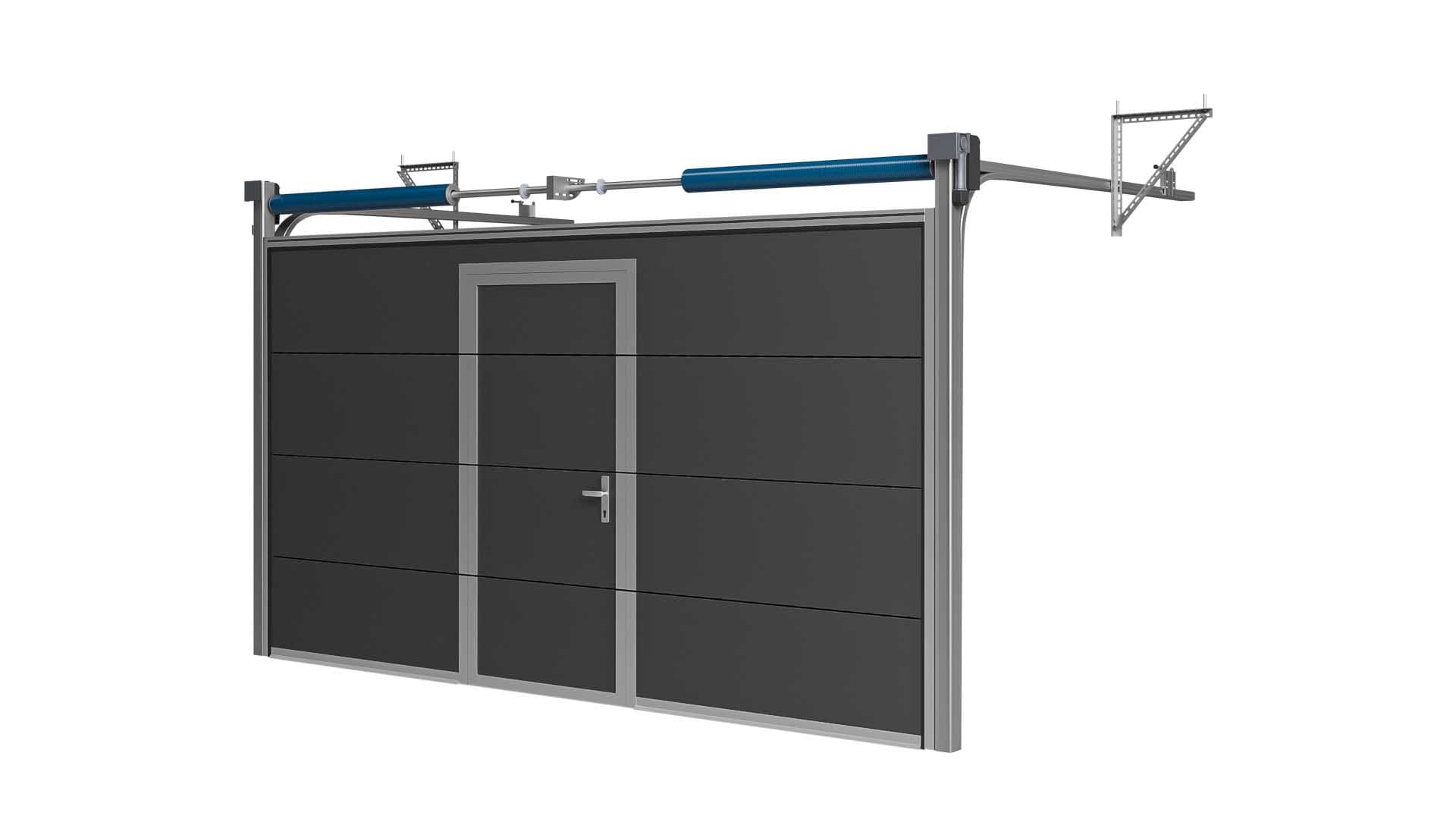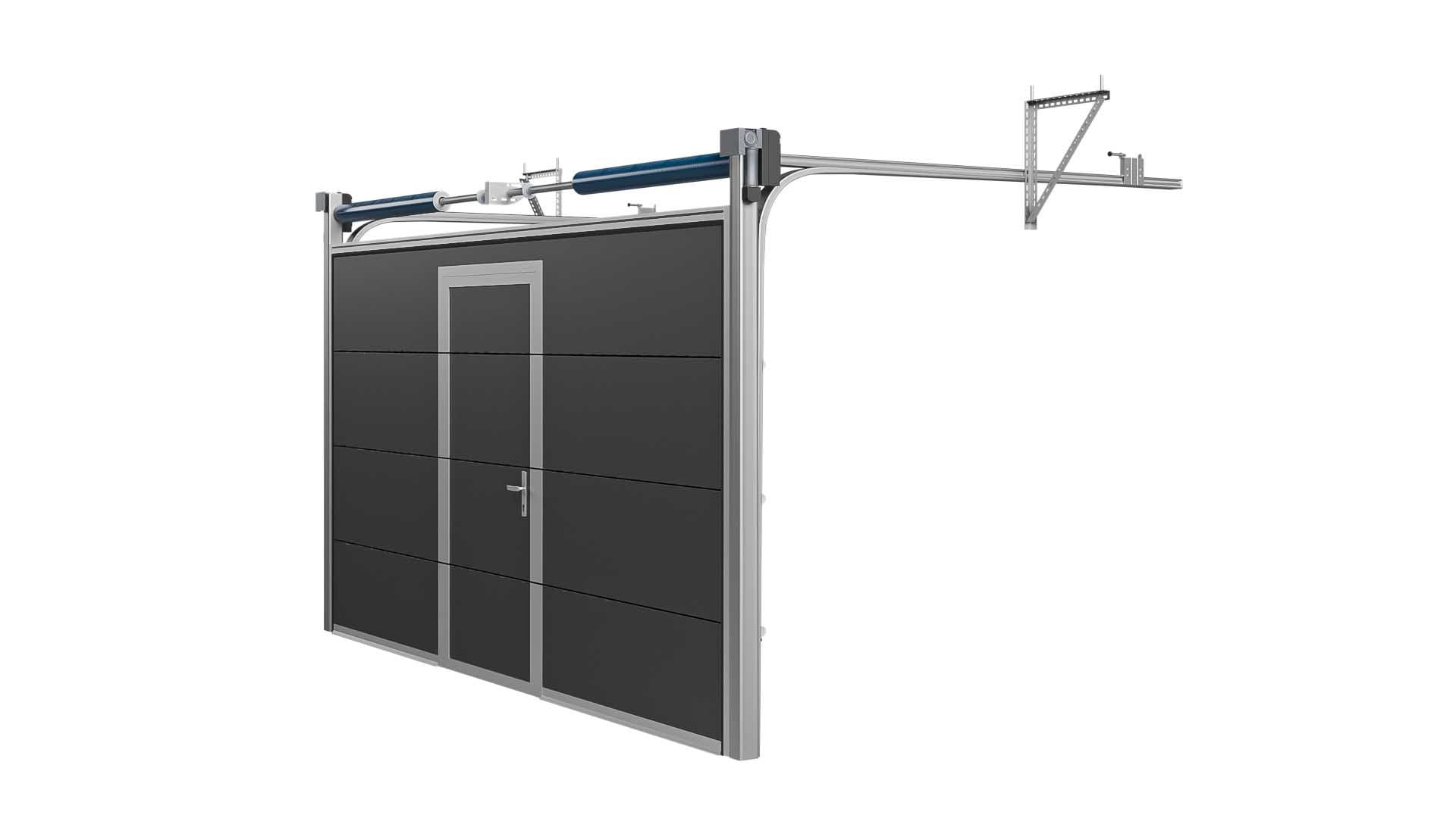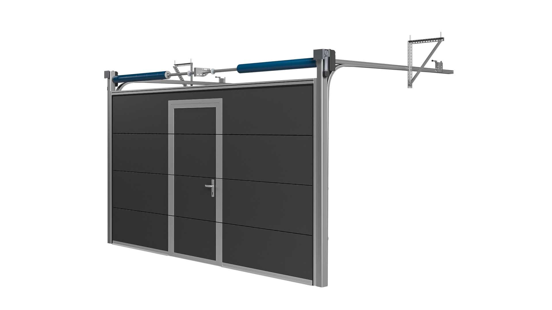 Brama Garażowa Segmentowa Czarna Woster Door Drzwi Serwisowe Niski próg PCD40C