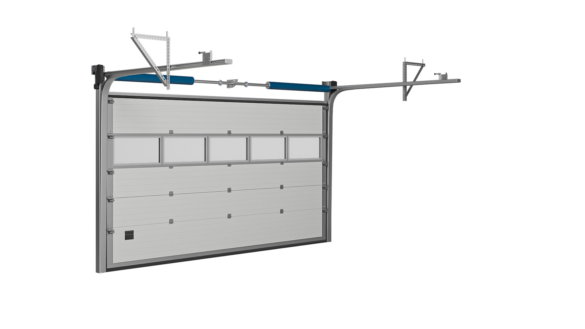 Kompletna brama segmentowa w/g zamówionego wymiaru otworu zawiera: