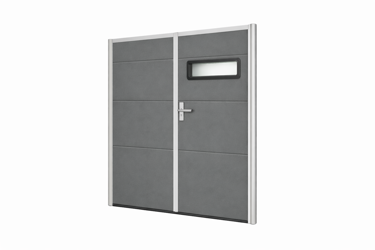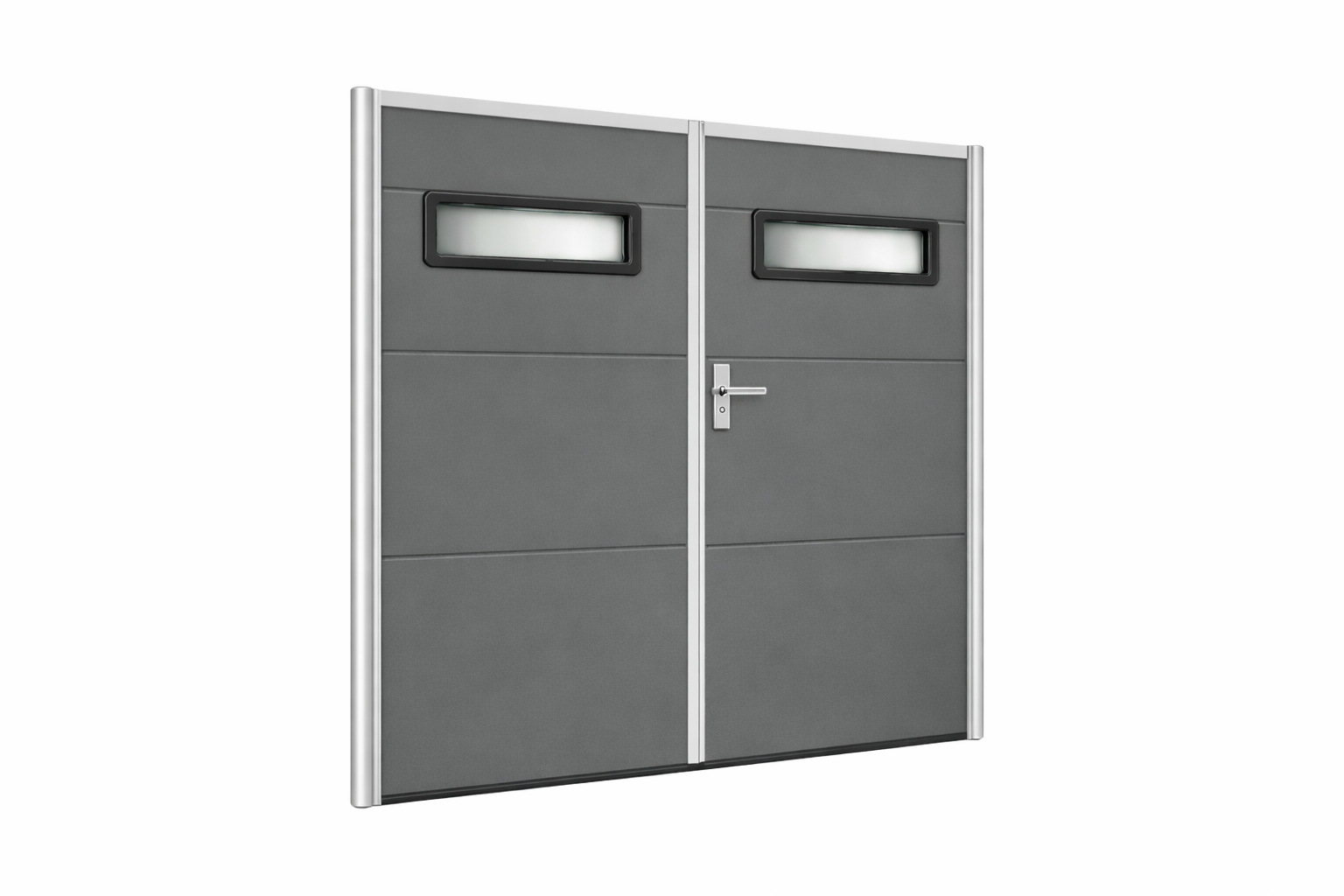 Nowoczesna brama garażowa dwuskrzydłowa kwarc RAL 7039