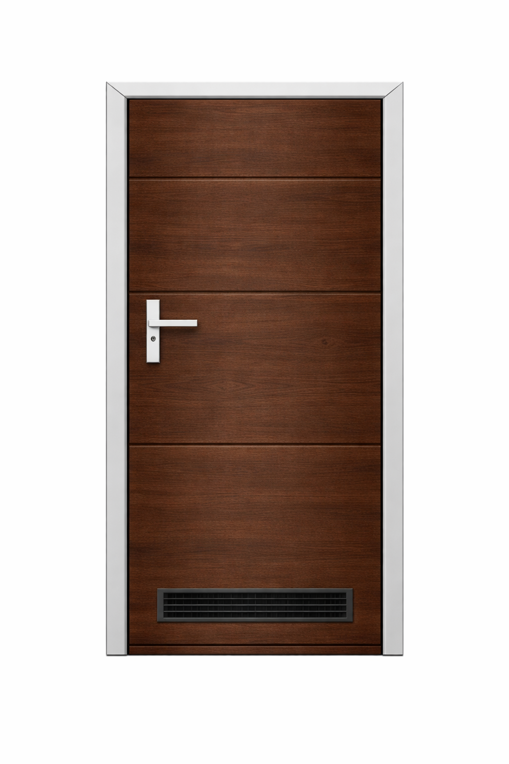 Drzwi boczne garażowe wykonane z paneli bramy segmentowej. Idealne dopasowanie do bramy pod względem koloru i struktury . Praktyczne dodatkowe wejście do garażu lub hali bez konieczności otwierania bramy. Solidna konstrukcja i nowoczesny wygląd.