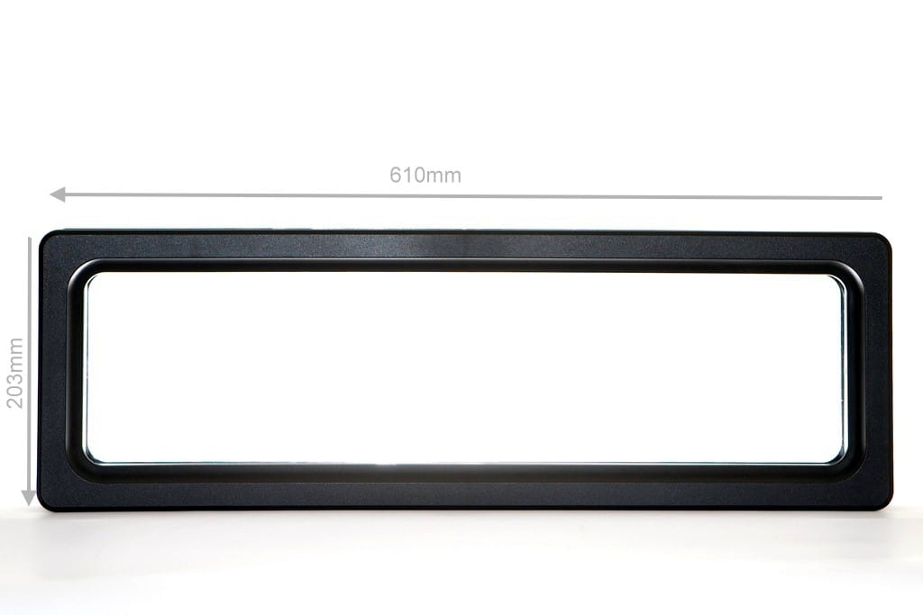 Okno do bramy segmentowej garażowej zastosowanie panel 40mm. Okno w kolorze czarnym, skręcane o wymiarach 610mm x 203mm. Wycięcie w panelu na okno należy zastosować wymiar 180 x 588 mm. Zaleca się użycie dodatkowego uszczelnienia w przypadku większych przetłoczeń lub nierówności panelu. Szyba zespolona z ramką.