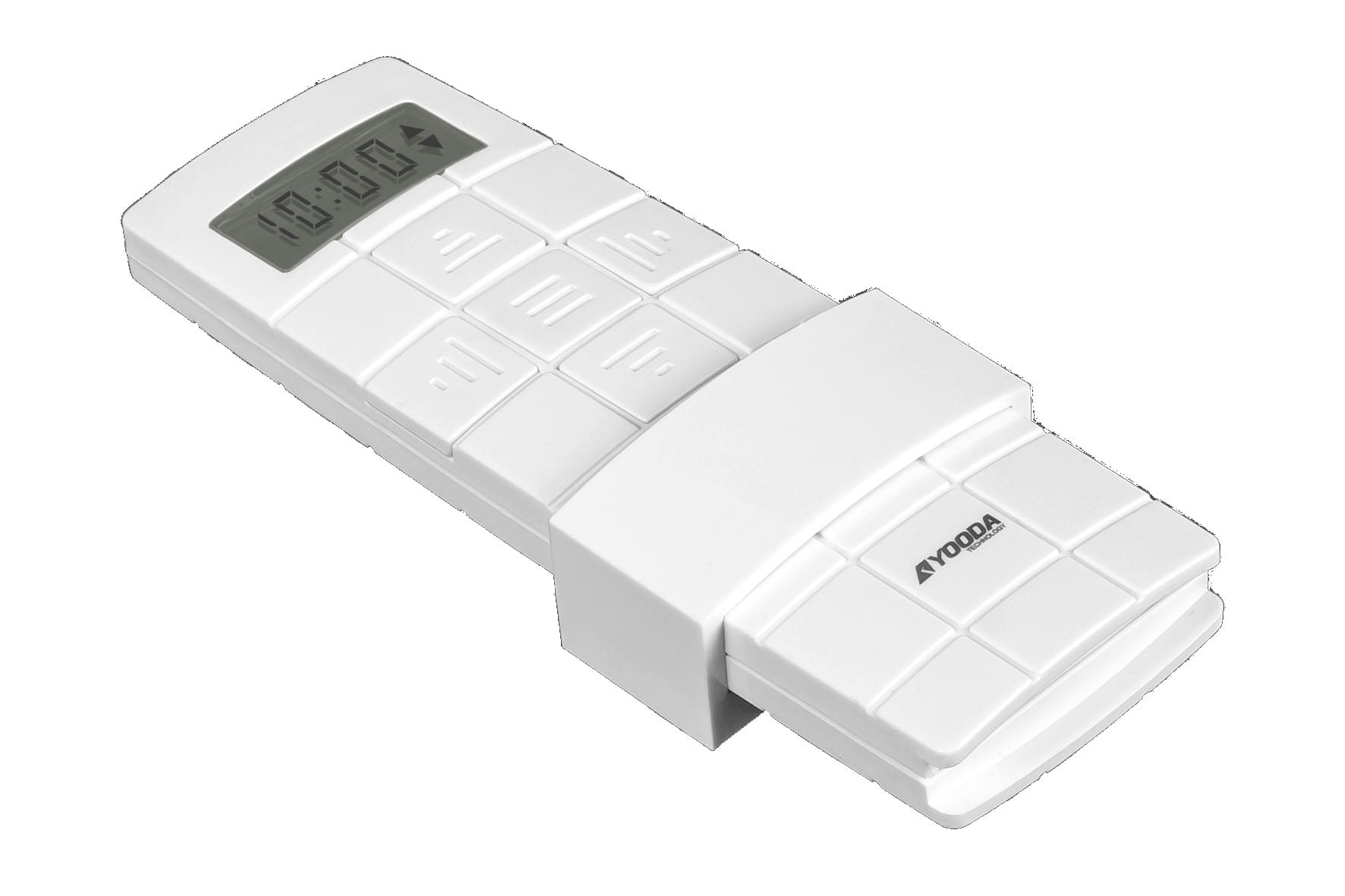Każdy kanał to możliwość ustawienia indywidualnych godzin. Posiada trzy tryby pracy : manualny, automatyczny i losowy. Kompatybilność ze wszystkimi urządzeniami Yooda umożliwia sterowanie zarówno roletami wewnętrznymi jak i zewnętrznymi, a także firanami, zasłonami, markizami, oświetleniem itd.