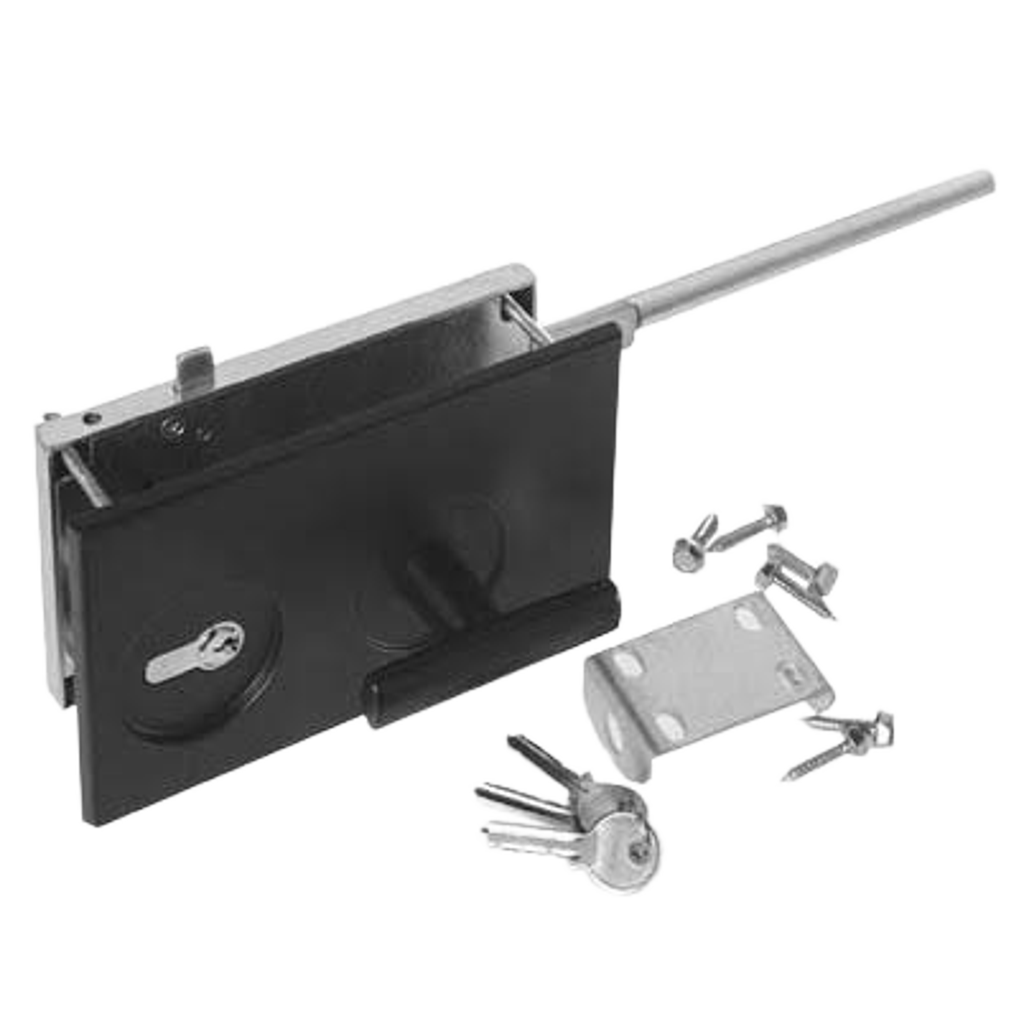 Zamek montowany jest wewnątrz konstrukcji bramy i umożliwia skuteczne ryglowanie skrzydła, zwiększając poziom bezpieczeństwa użytkownika.